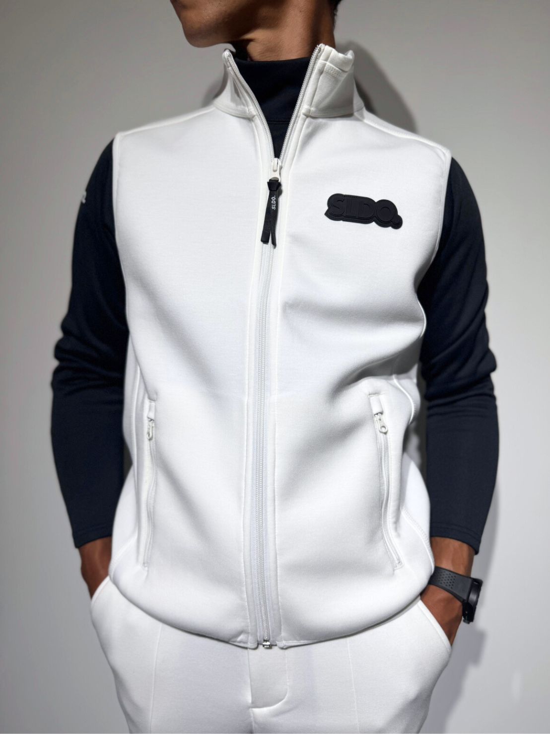 胸元には「3D SHADOW LOGO」を配置。マットブラックのSLDO.ロゴが、控えめながらも上品で洗練された存在感を放ちます。