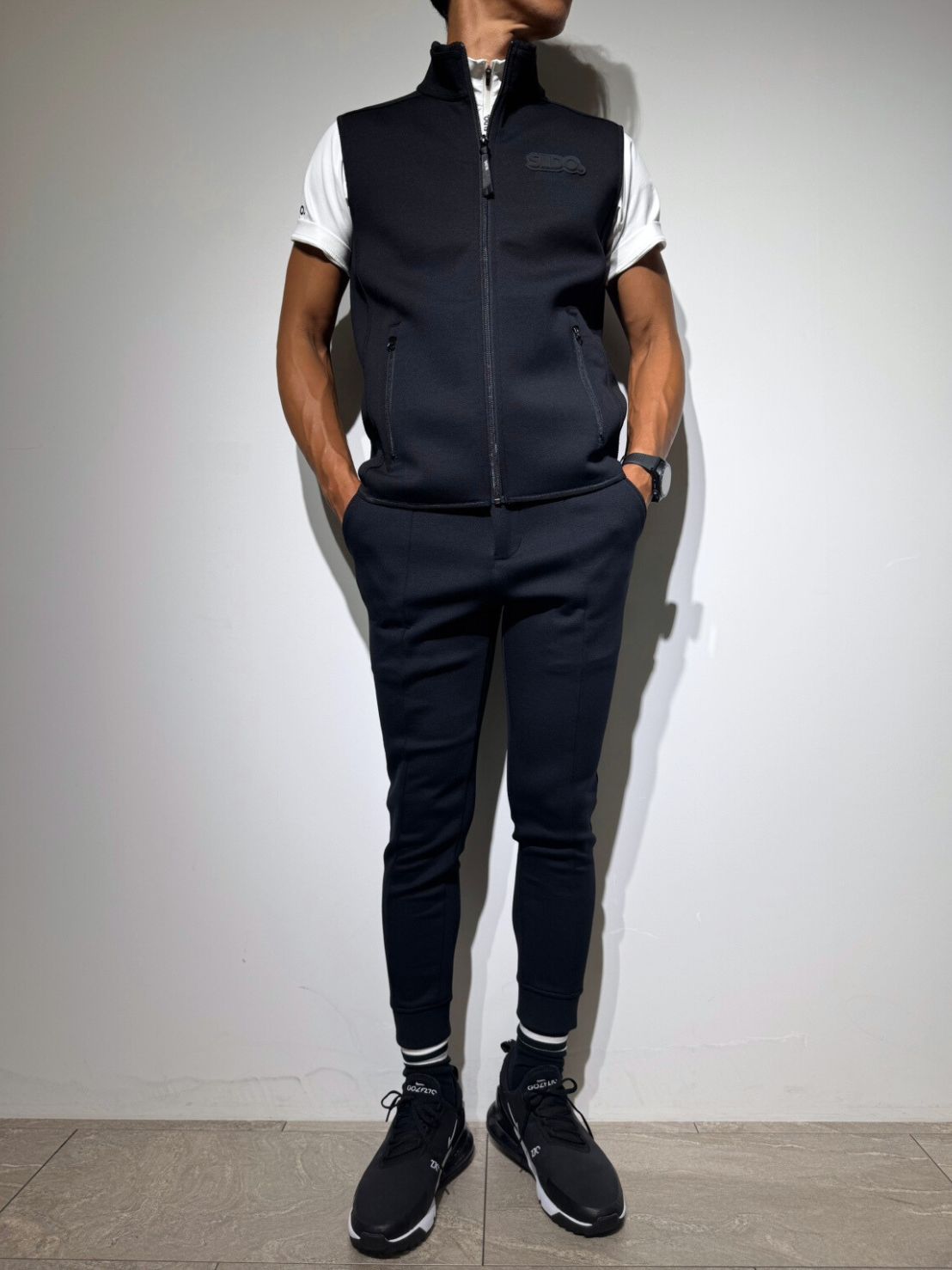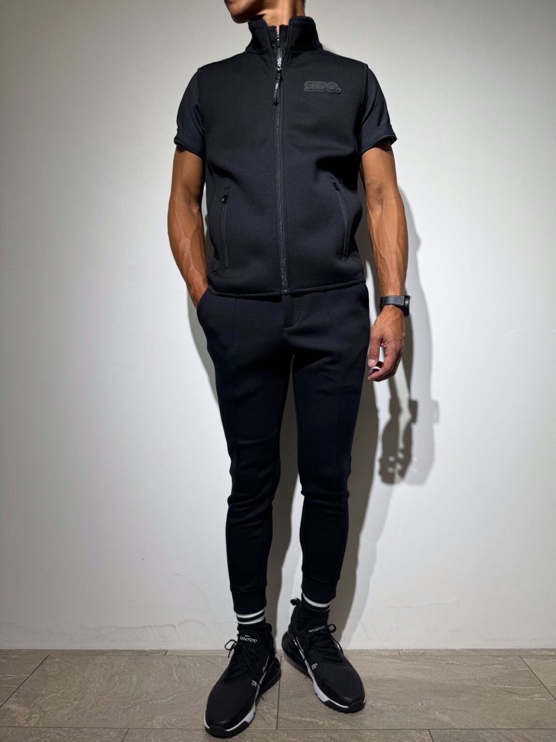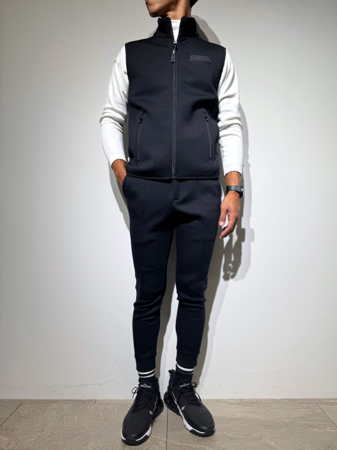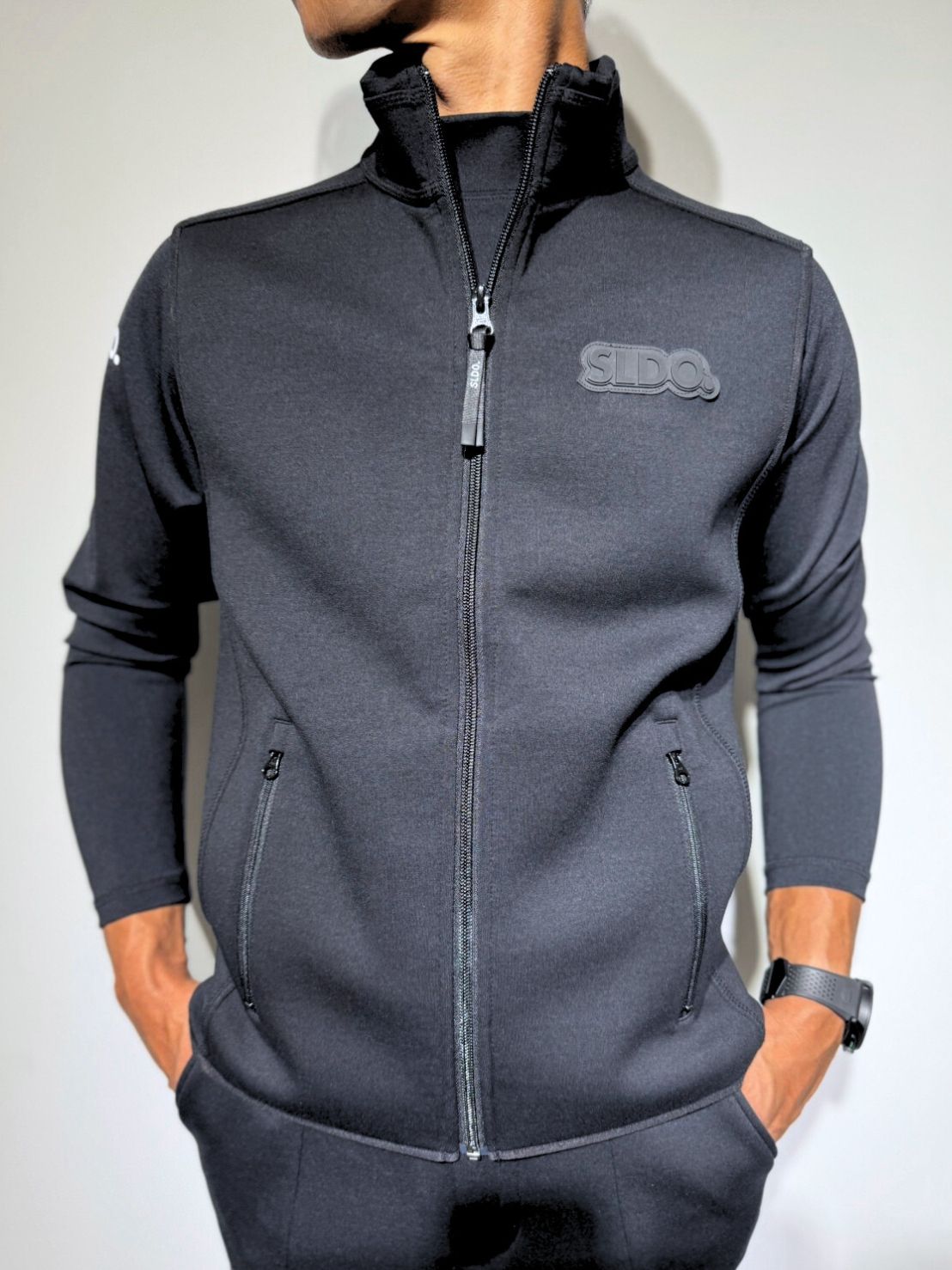 胸元には「3D SHADOW LOGO」を配置。マットブラックのSLDO.ロゴが、控えめながらも上品で洗練された存在感を放ちます。