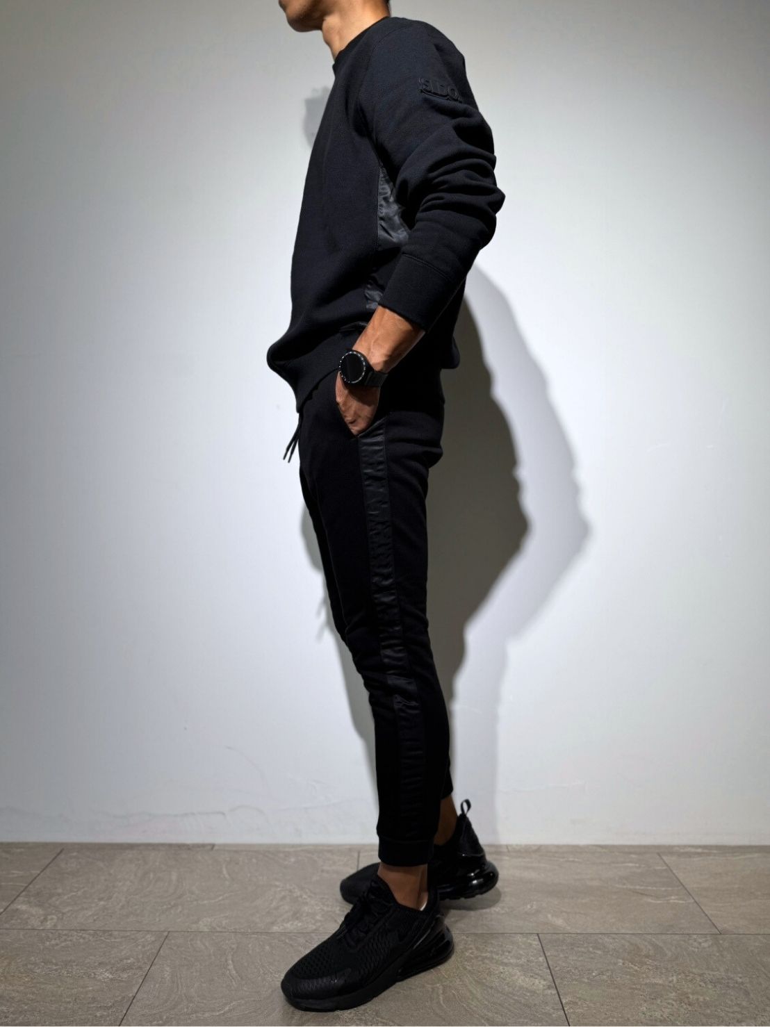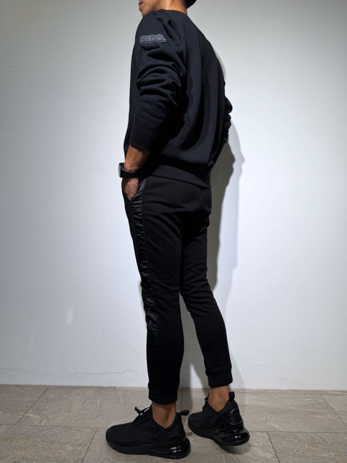 袖には「3D SHADOW LOGO」を配置。マットブラックのSLDO.ロゴが、控えめながらも上品で洗練された存在感を放ちます。