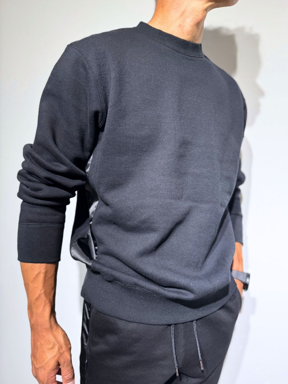 【EXTRA SERIES】裏起毛 サテン切替プルオーバー/BLACK (UNISEX)