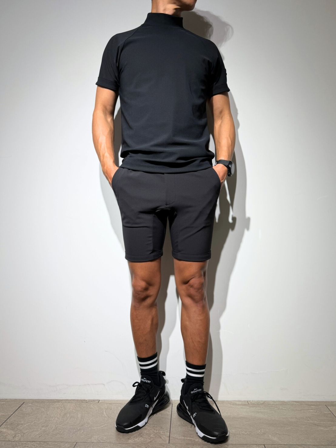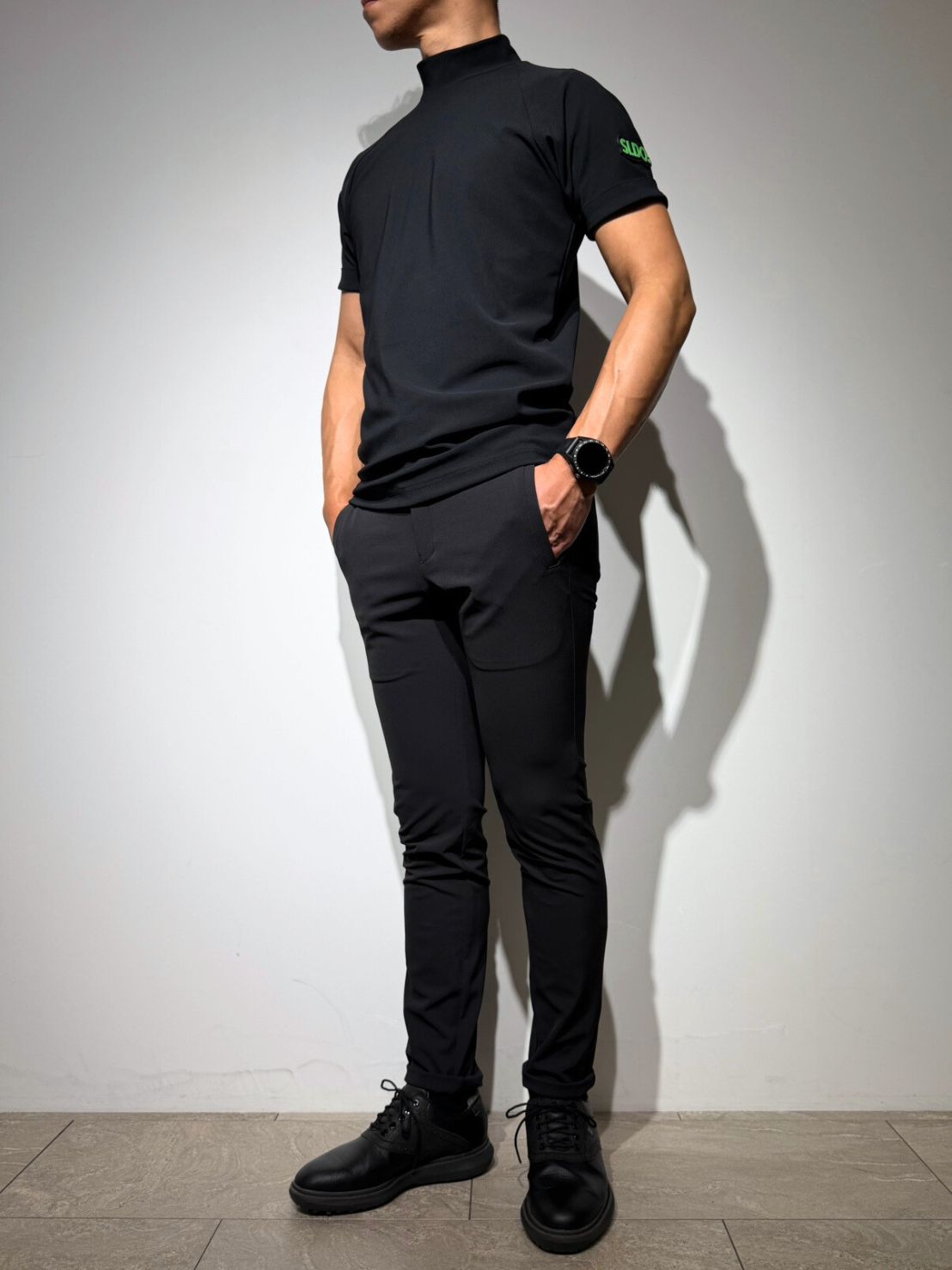 通気性に優れたハイストレッチのドライ素材でスポーティ―でありながら端正。