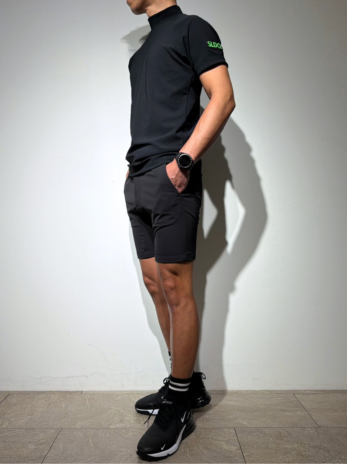 従来の半袖モックネックの袖をロールアップしたような丈感で、ミニマルかつ洗練された印象に。