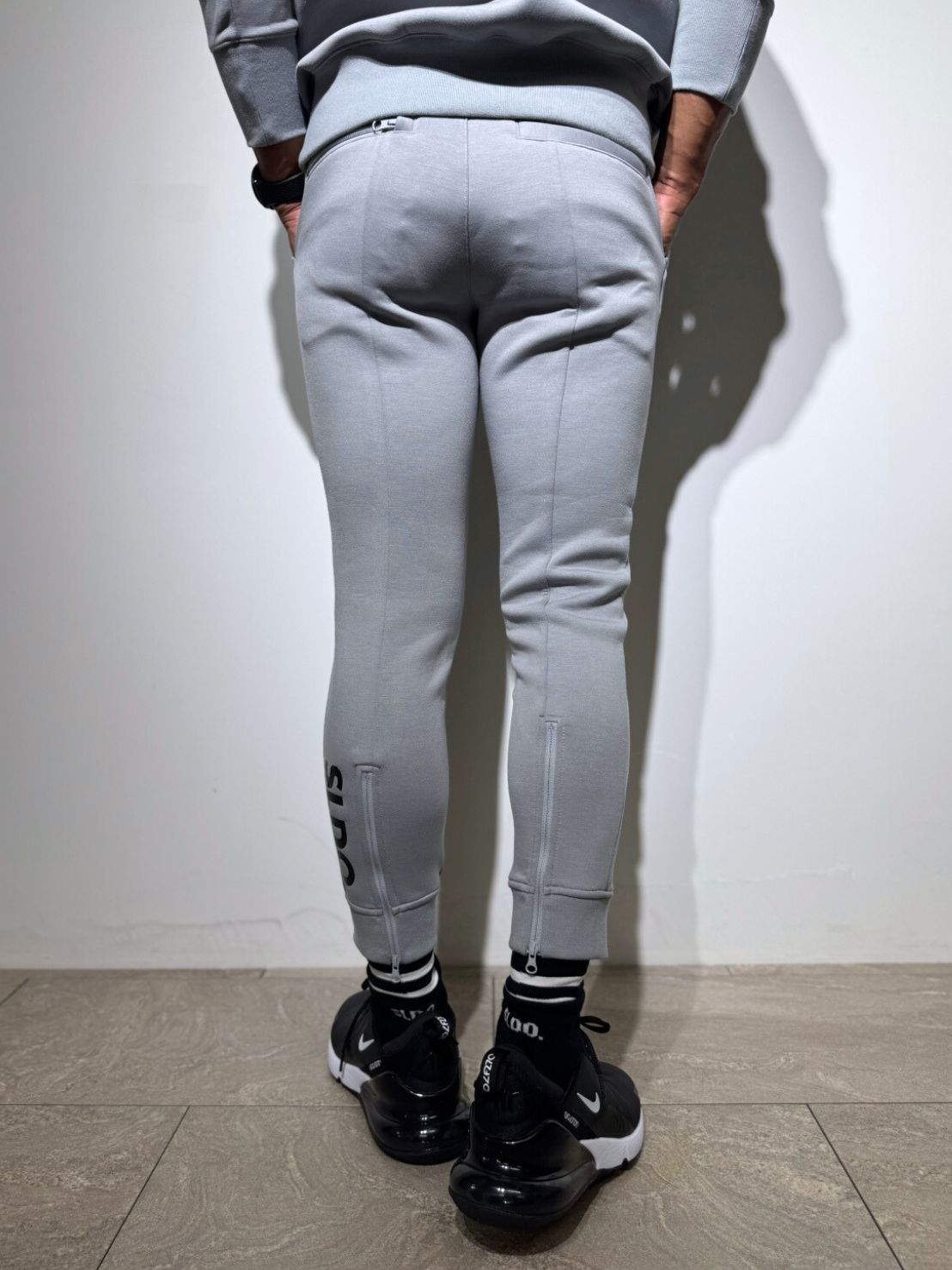 さらに裾のSLDO.ロゴや切替ラインなど、縦を強調するディテールを随所に配置。どの角度から見てもスタイルアップが叶います。