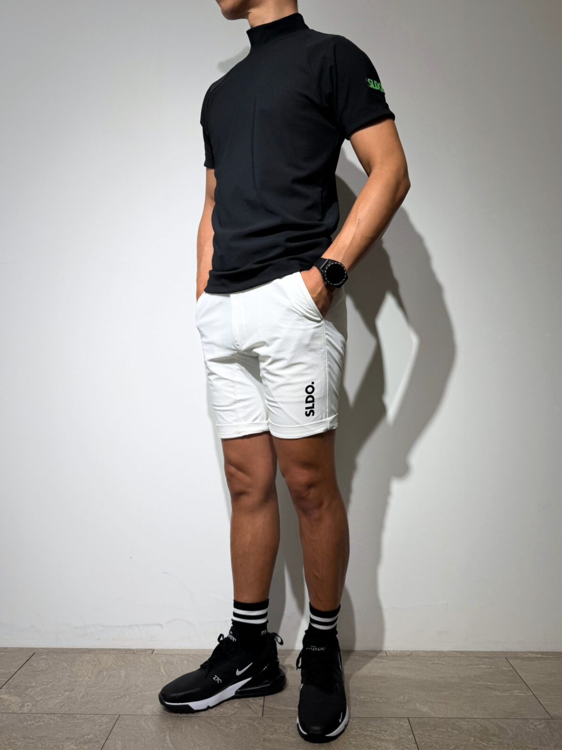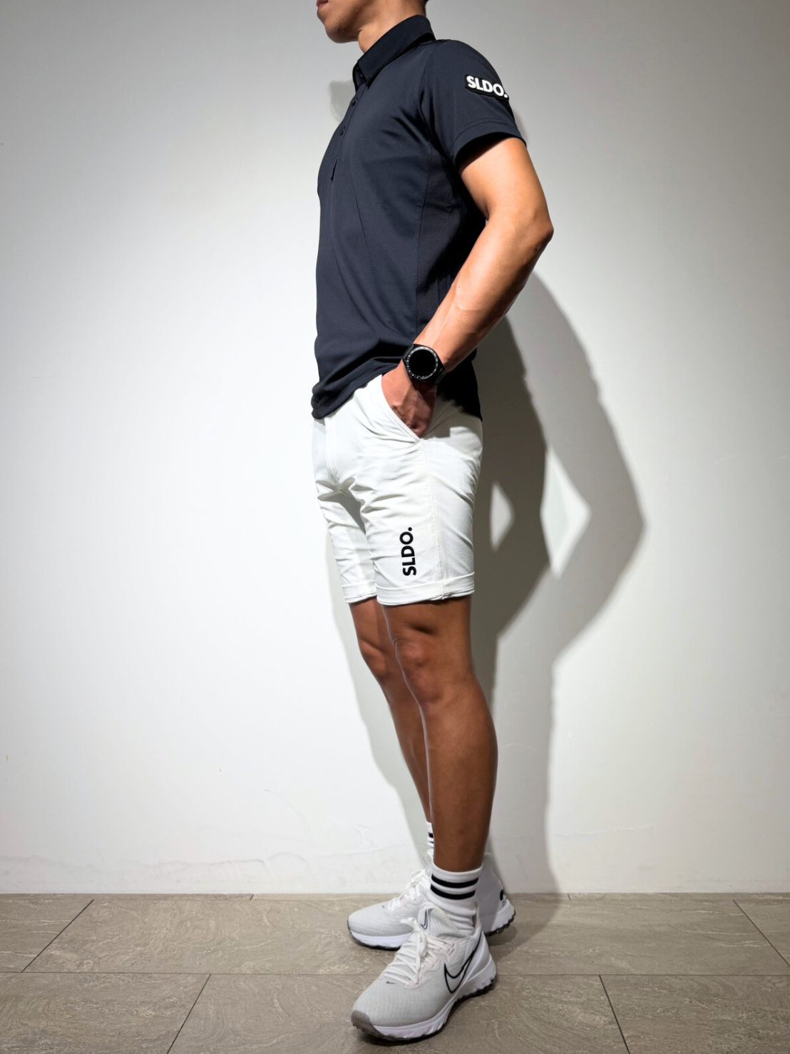 ヒップから裾にかけてのテーパードシルエットはスッキリとしたラインを維持しながらも締め付け過ぎず程良くフィット。ハーフパンツらしかぬスタイリッシュなシルエットに仕上げています。