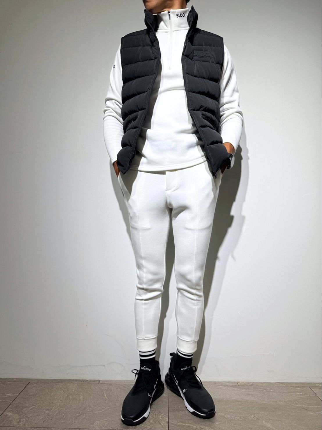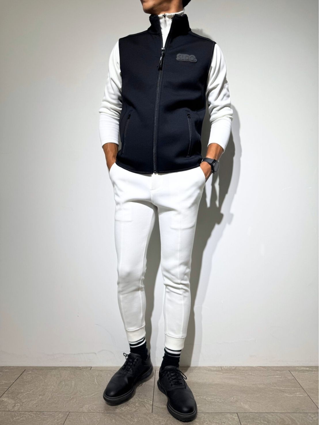ジップアップベストとのレイヤードのバランスが良く、身軽に暖かく冬のコーディネートをお楽しみいただけます。