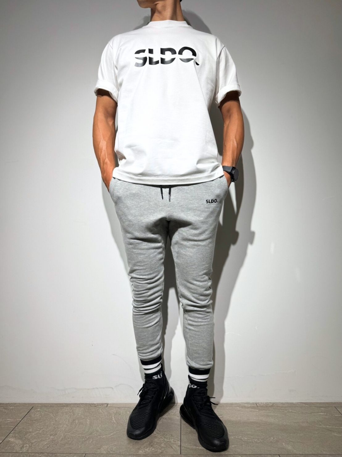 シンプルながら、絶妙なバランスでプリントされたSLANTING LOGOが目を惹くデザインに。