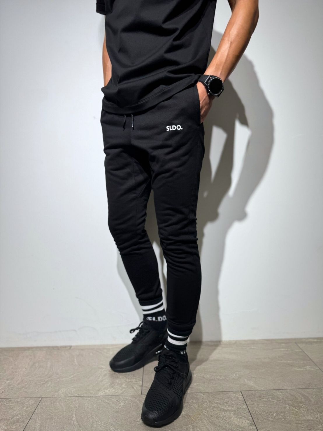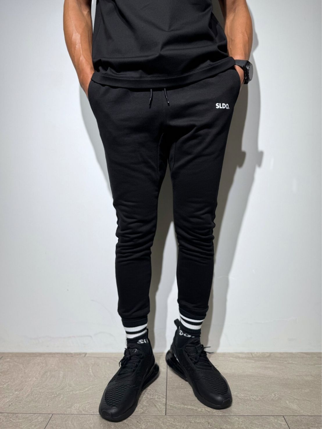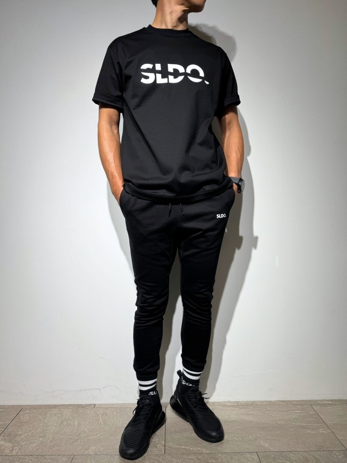 従来のスウェットパンツ特有のカジュアルさとは一線を画す、ブラックスラックスのようなキレイで洗練されたシルエット。